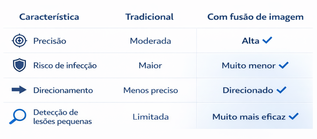 Com a fusão de imagem, é possível identificar exatamente onde estão as áreas suspeitas e direcionar a coleta com muito mais precisão.
